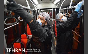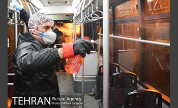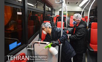 Disinfecting Buses in Tehran