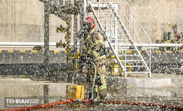 Emergency response maneuver was held with the presence of Mahmoud Kalhori, Mayor of Region 5, Navid Khorshidi, Head of HSE of Tehran National Petroleum Products Distribution Company, Alireza Haji Hosseini, Secretary of Crisis Management Headquarters of Region 5 and Mohammad Diba, Director Area one of the fire department in the oil depot northwest of Tehran, on Monday morning, October 3rd, 2021.