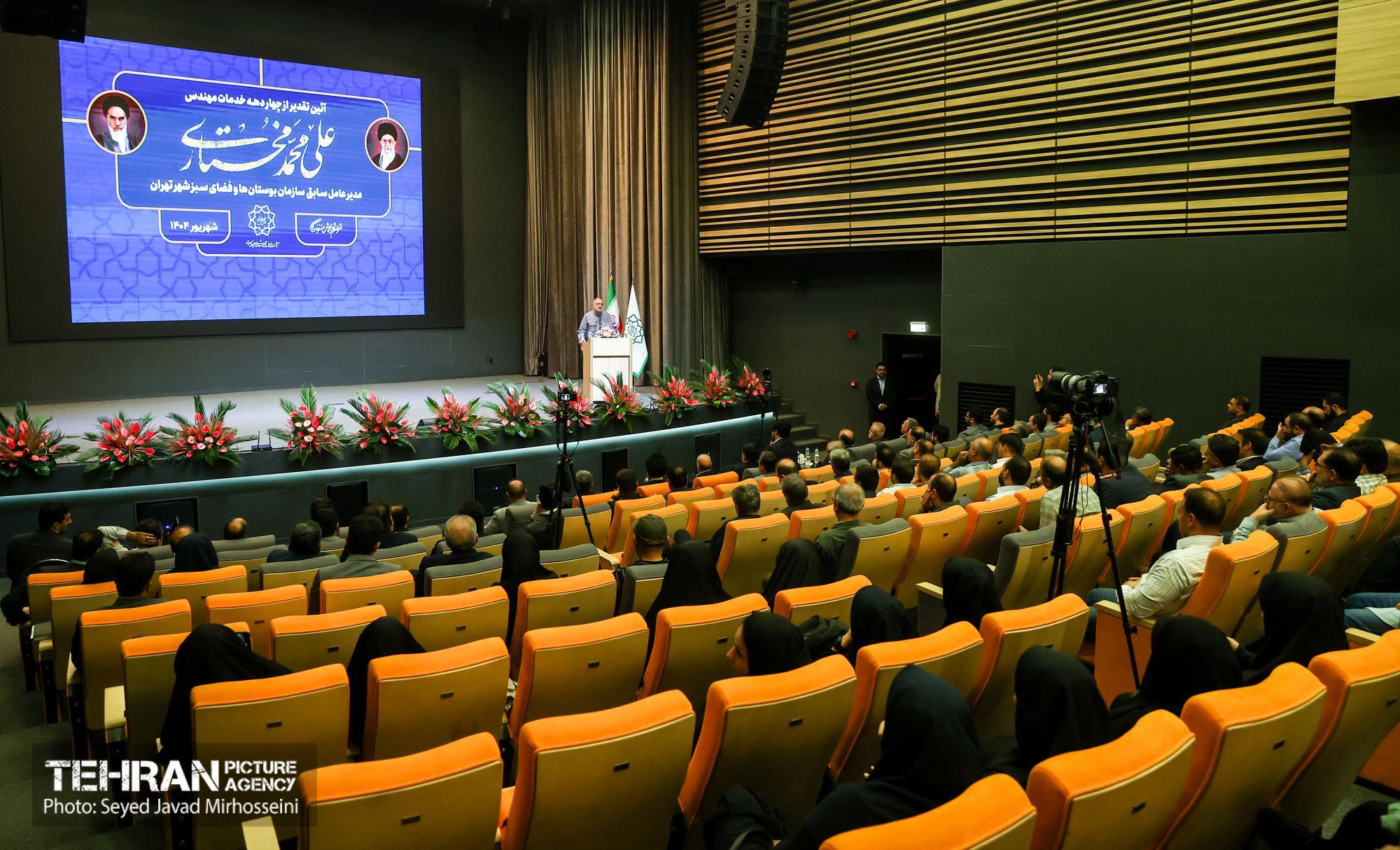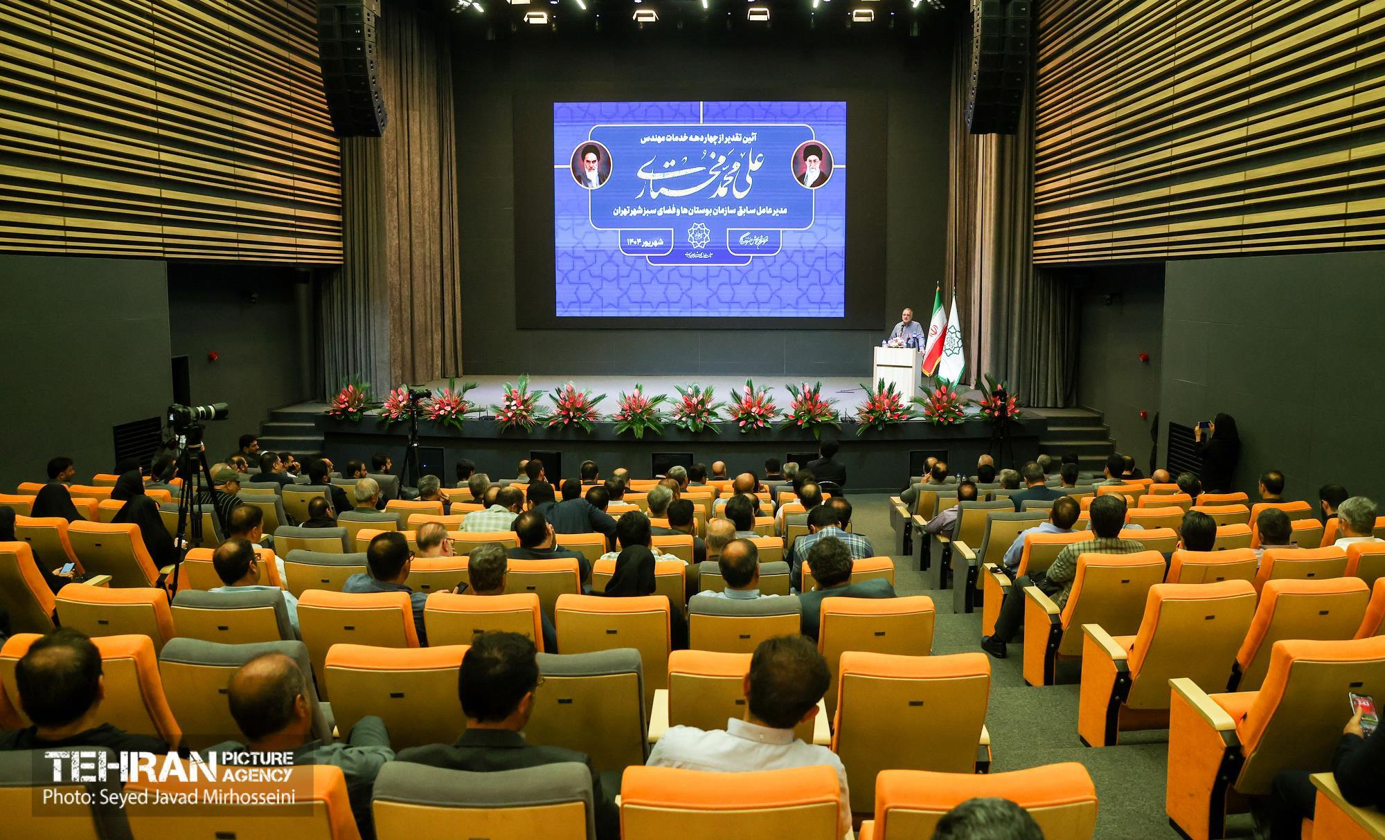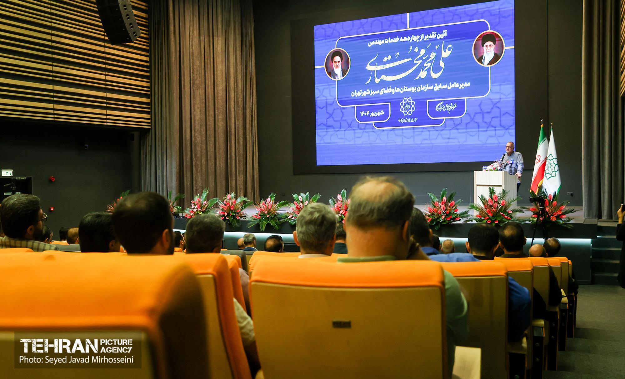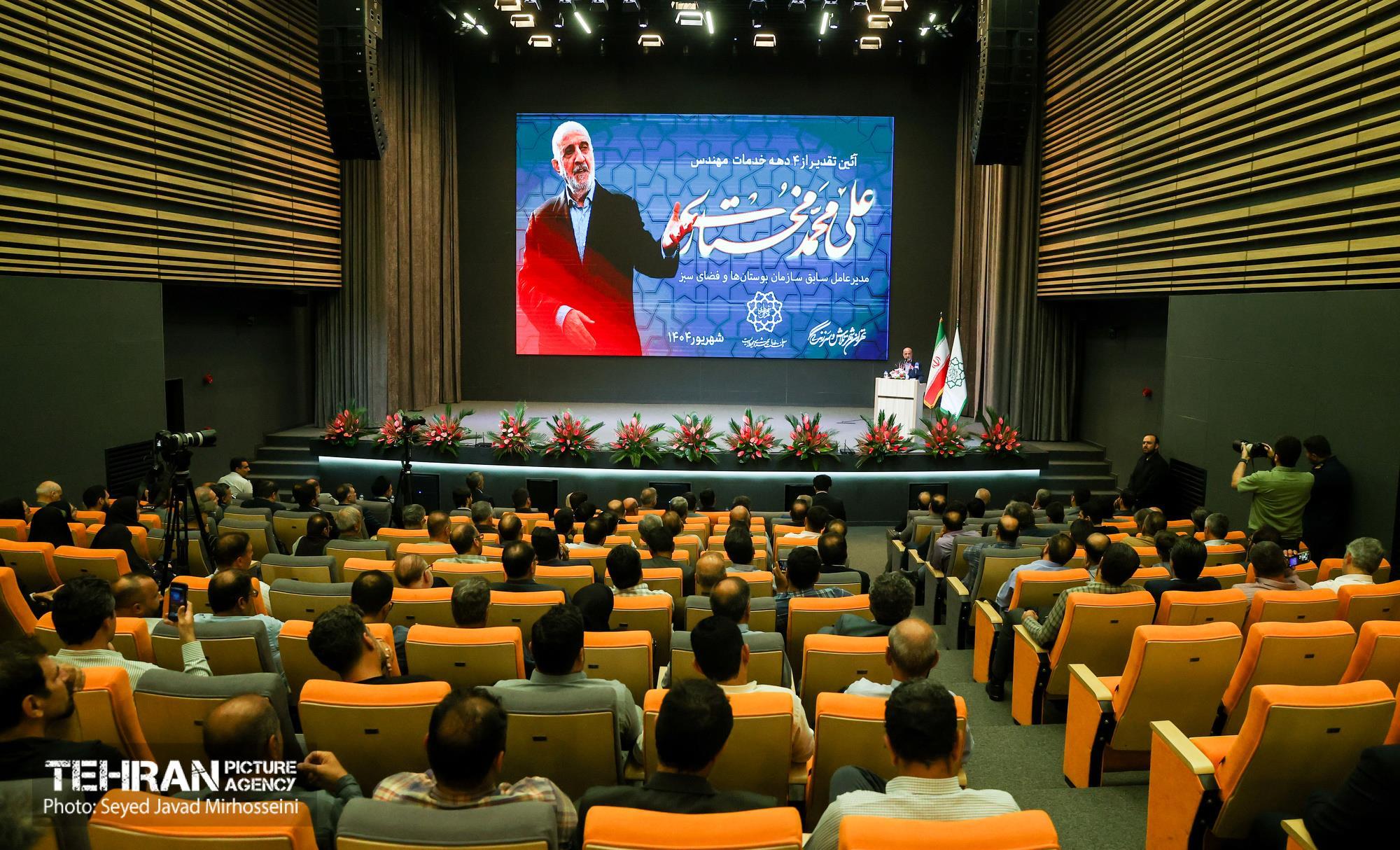 آیین تقدیر از چهار دهه خدمات علی محمد مختاری ۳۱ شهریور ۱۴۰۴ آیین تقدیر از چهار دهه خدمات علی محمد مختاری، مدیرعامل سابق سازمان بوستانها و فضای سبز شهر تهران، دوشنبه ۳۱ شهریورماه ۱۴۰۴ با حضور علیرضا زاکانی شهردار تهران و جمعی از مسئولان شهری در خانه شهر (بلدیه تهران) برگزار شد. سید جواد میرحسینی https://www.tehranpicture.ir/u/nRU عباسعلی نوبخت علیرضا زاکانی علی محمد مختاری