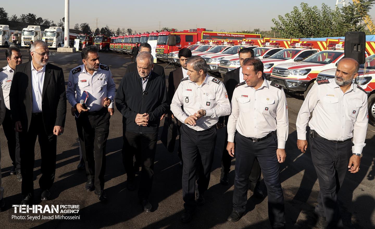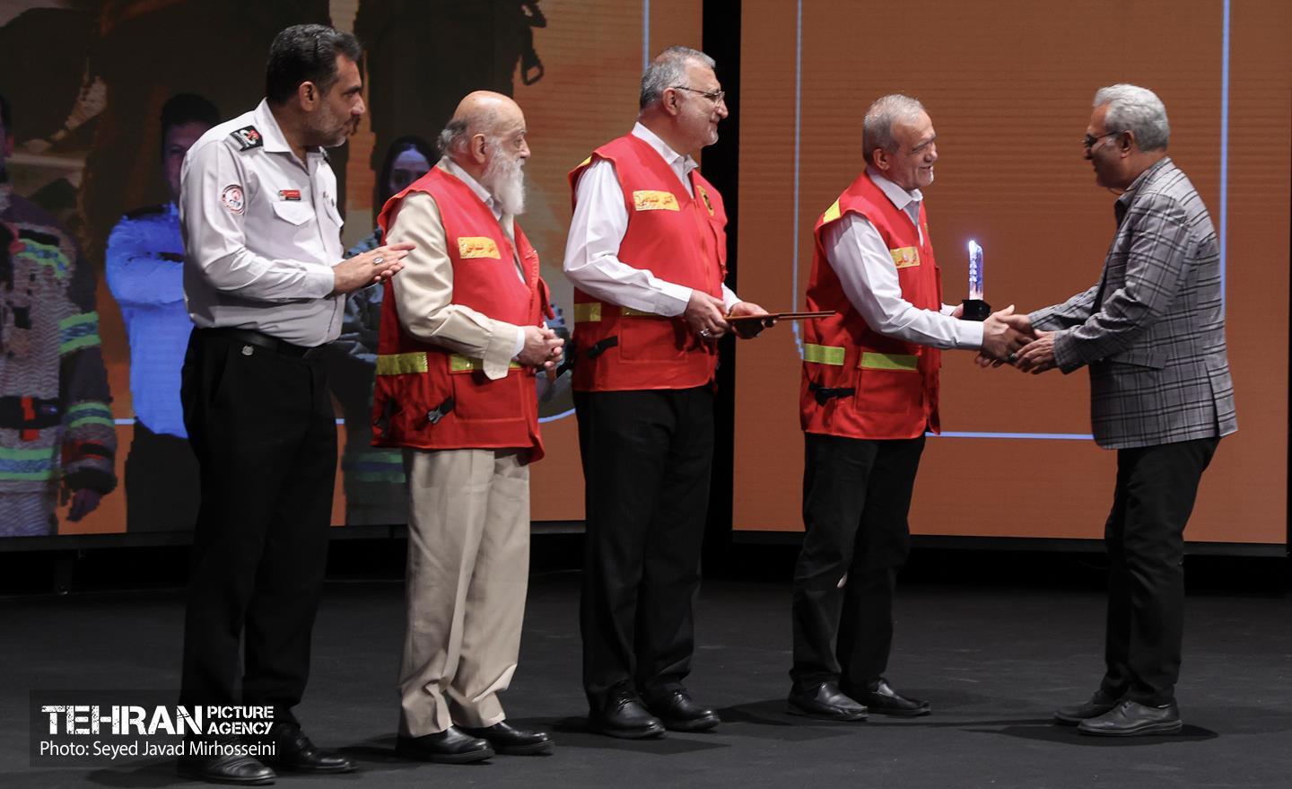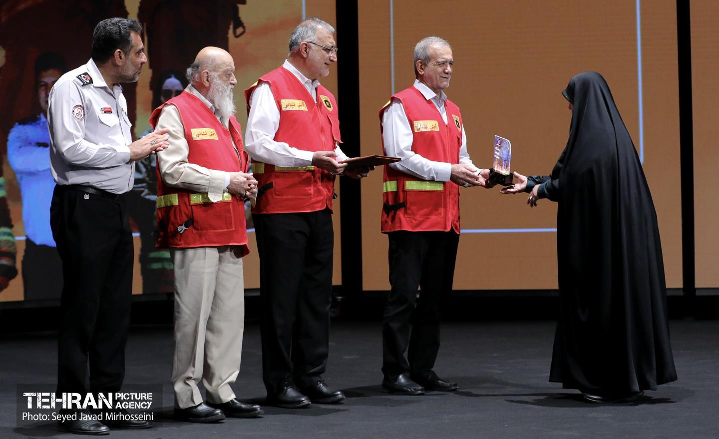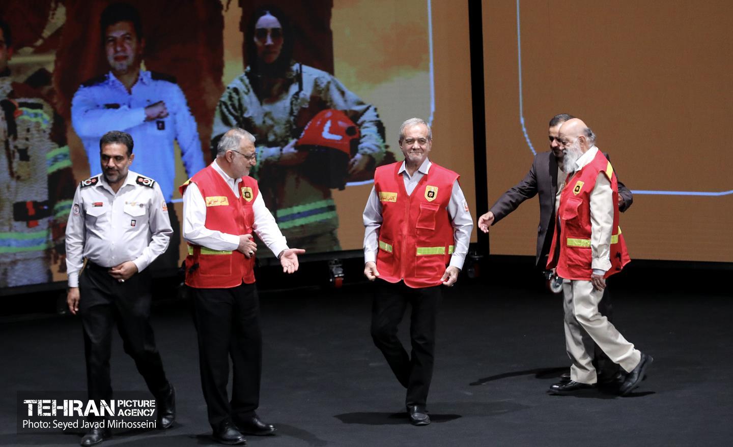 مراسم گرامیداشت روز آتش‌نشان و رونمایی از تجهیزات جدید سازمان آتش نشانی با حضور مسعود پزشکیان رئیس‌جمهوری، علیرضا زاکانی شهردار تهران، اعضای شورای اسلامی شهر تهران، مدیران شهری و جمعی از پرسنل این سازمان صبح امروز 7 مهرماه 1404 در سالن اصلی برج میلاد برگزار شد.