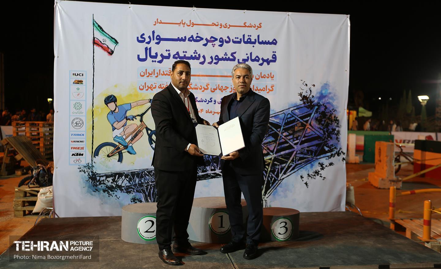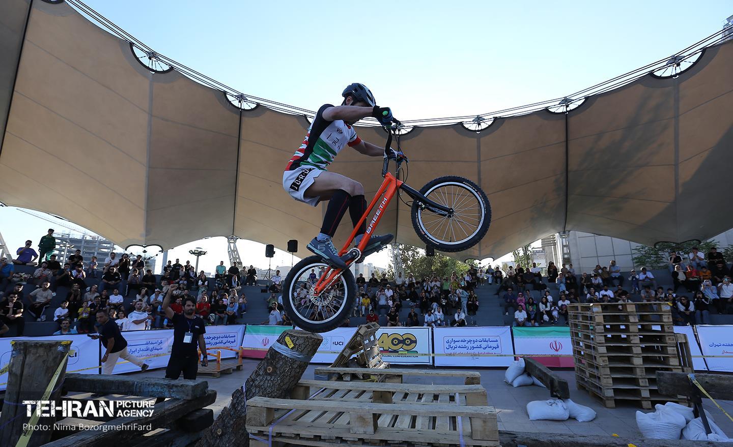 مسابقات دوچرخه سواری «تریال» قهرمانی کشور ۱۸ مهر ۱۴۰۴ مسابقات دوچرخه سواری تریال قهرمانی کشور، جمعه (۱۸ مهر ۱۴۰۴) در بوستان آب و آتش تهران برگزار شد. «دوچرخه سواری تریال» رشتهای از دوچرخهسواری کوهستان است که در آن دوچرخهسوار تلاش میکند بدون اینکه پا به زمین بگذارد از مسیری با موانع عبور کند. نیما بزرگمهری فرد https://www.tehranpicture.ir/u/nTF