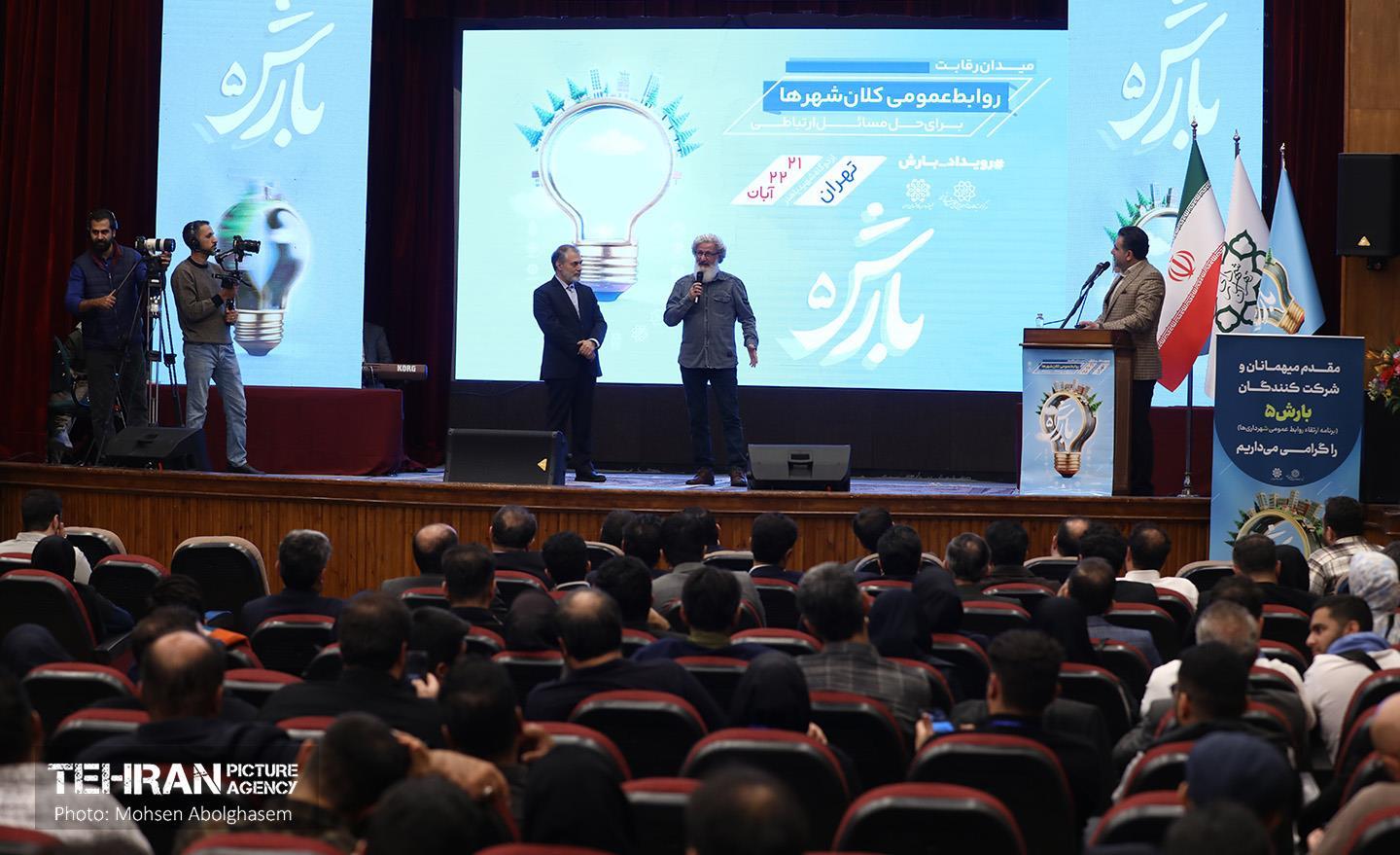 اختتامیه پنجمین رویداد بارش ۲۲ آبان ۱۴۰۴ مراسم اختتامیه پنجمین رویداد برنامه ارتقا روابط عمومی شهرداریها (بارش) با حضور شرکت کنندگانی از روابط عمومی های شهرداری های کلانشهر های کشور به میزبانی مرکز ارتباطات و امور بینالملل شهرداری تهران در مجموعه اردوگاه شهید باهنر برگزار شد. محسن ابوالقاسم https://www.tehranpicture.ir/u/nVy رویداد بارش روابط عمومی شهرداری مرکز ارتباطات و امور بینالملل
