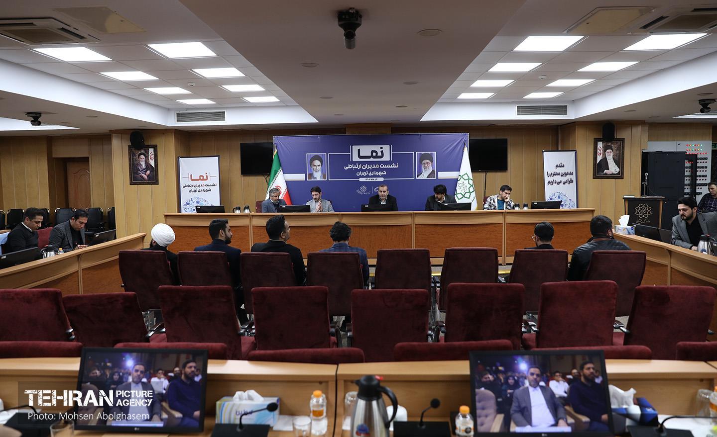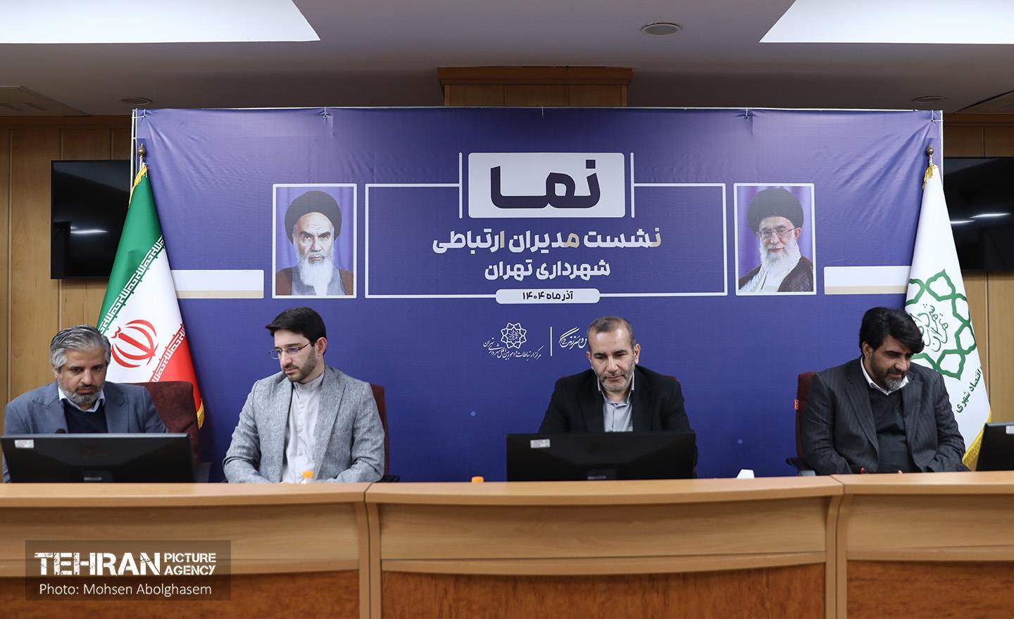 نشست مدیران ارتباطی شهرداری تهران ۲۲ آذر ۱۴۰۴ نشست مدیران ارتباطی شهرداری تهران (نما) با حضور محمدطیب صحرایی مدیرکل حوزه شهردار تهران، عبدالمطهر محمدخانی سخنگوی شهرداری تهران، حمیدرضا غلامزاده سرپرست مرکز ارتباطات و امور بینالملل شهرداری تهران، حامد احسانبخش معاون روابط عمومی و صادق وفایی نیکو معاون تبلیغات مرکز ارتباطات و مدیران روابط عمومیهای معاونتها، مناطق، سازمان ها و شرکت های شهرداری تهران در سالن اجتماعات معاونت مالی و اقتصاد شهری برگزار شد. محسن ابوالقاسم https://www.tehranpicture.ir/u/nXz مدیران ارتباطی شهرداری تهران محمد طیبصحرایی عبدالمطهر محمدخانی حمیدرضا غلامزاده حامد احسانبخش