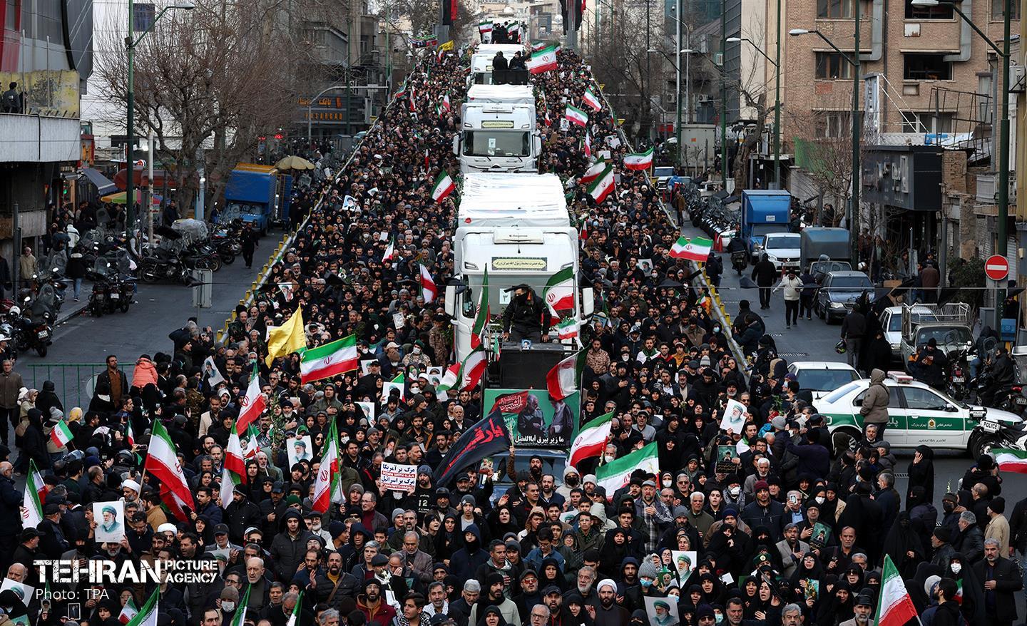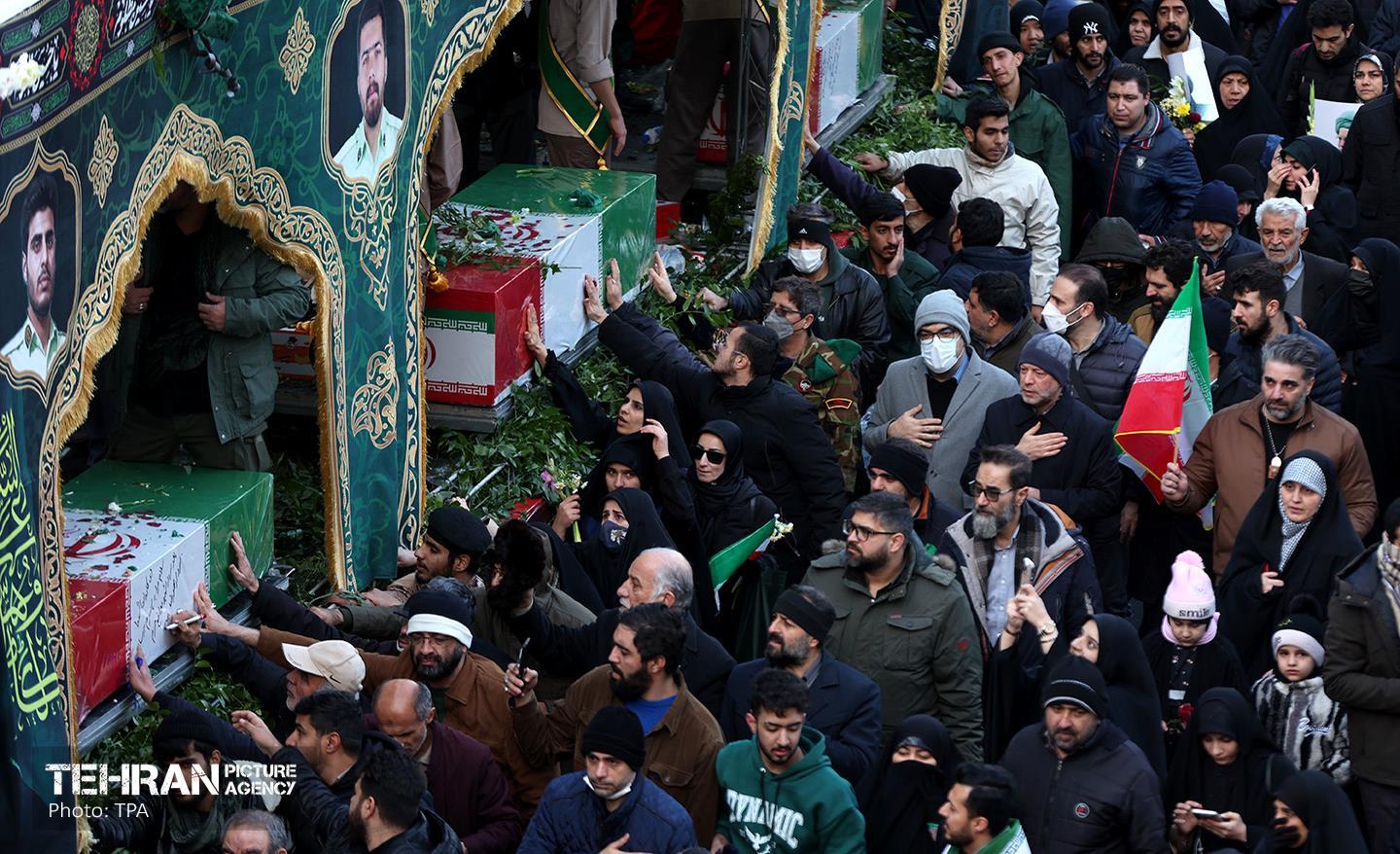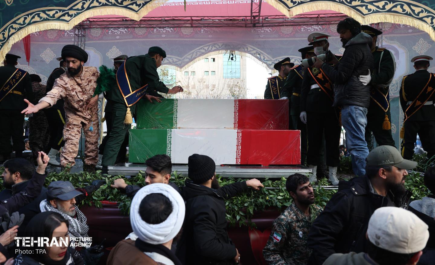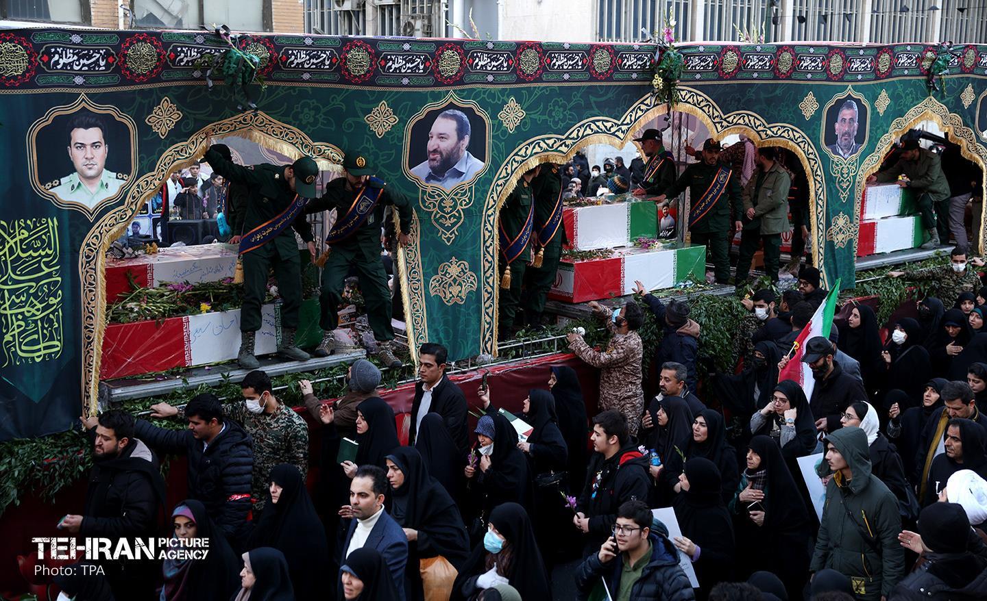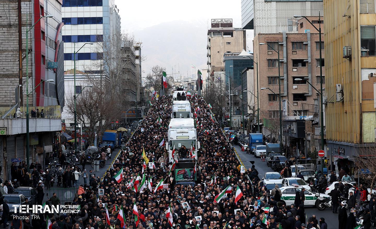 تشییع پیکر ۱۰۰ شهید مردمی و مدافع امنیت در تهران - 2 ۲۴ دی ۱۴۰۴ مراسم تشییع پیکر ۱۰۰ شهید مردمی و مدافع امنیت که در ناآرامی ها و اغتشاشات اخیر در تهران به شهادت رسیدند، عصر چهارشنبه، ۲۴ دی ۱۴۰۴ با حضور خانواده های معظم شهدا و ایثارگران، مسئولان کشوری و لشکری و اقشار مختلف مردم از مقابل دانشگاه تهران به سمت معراج شهداء برگزار شد. سبحان فرج ون https://www.tehranpicture.ir/u/nZ4 امنیت شهید تشییع عباس عراقچی