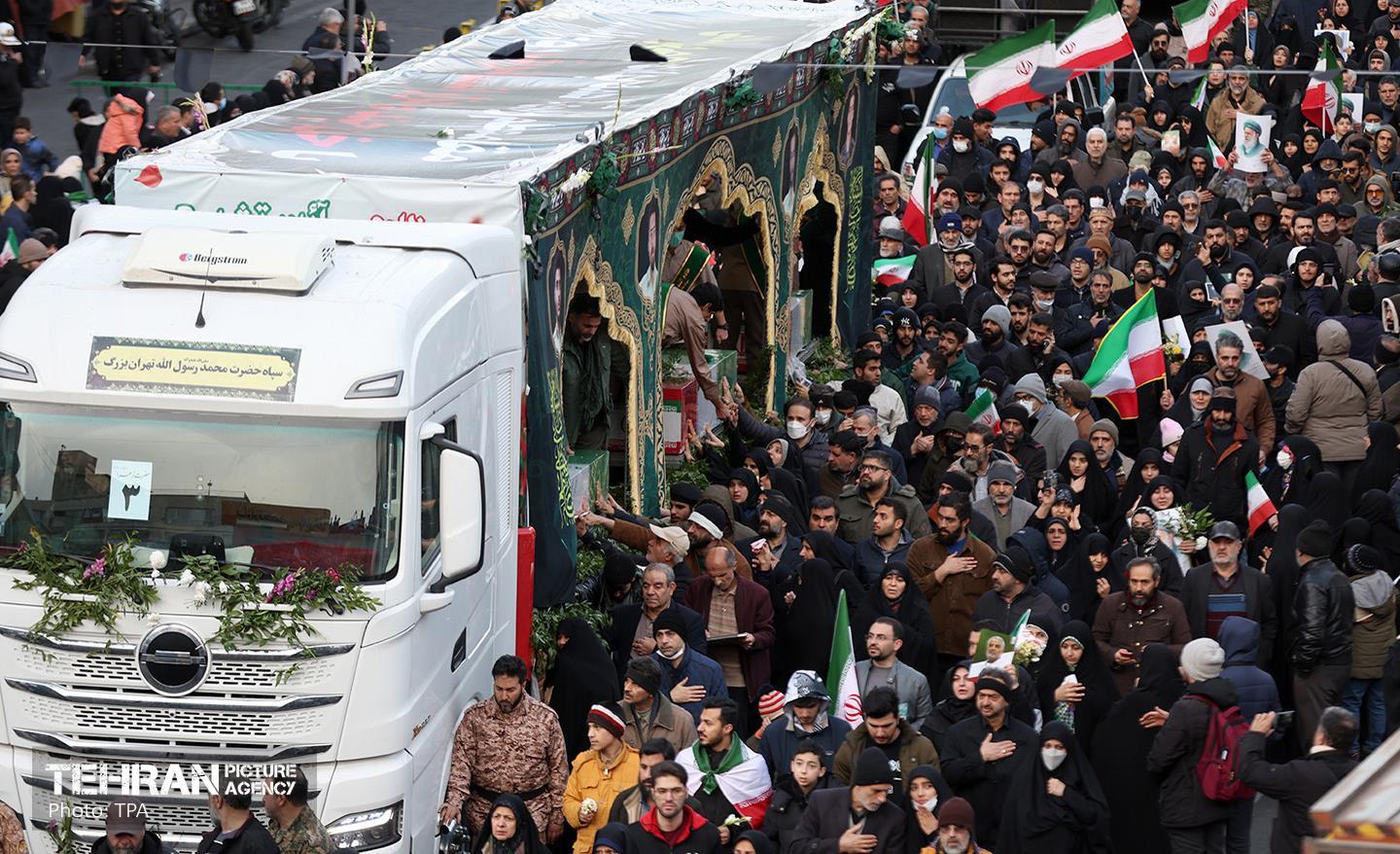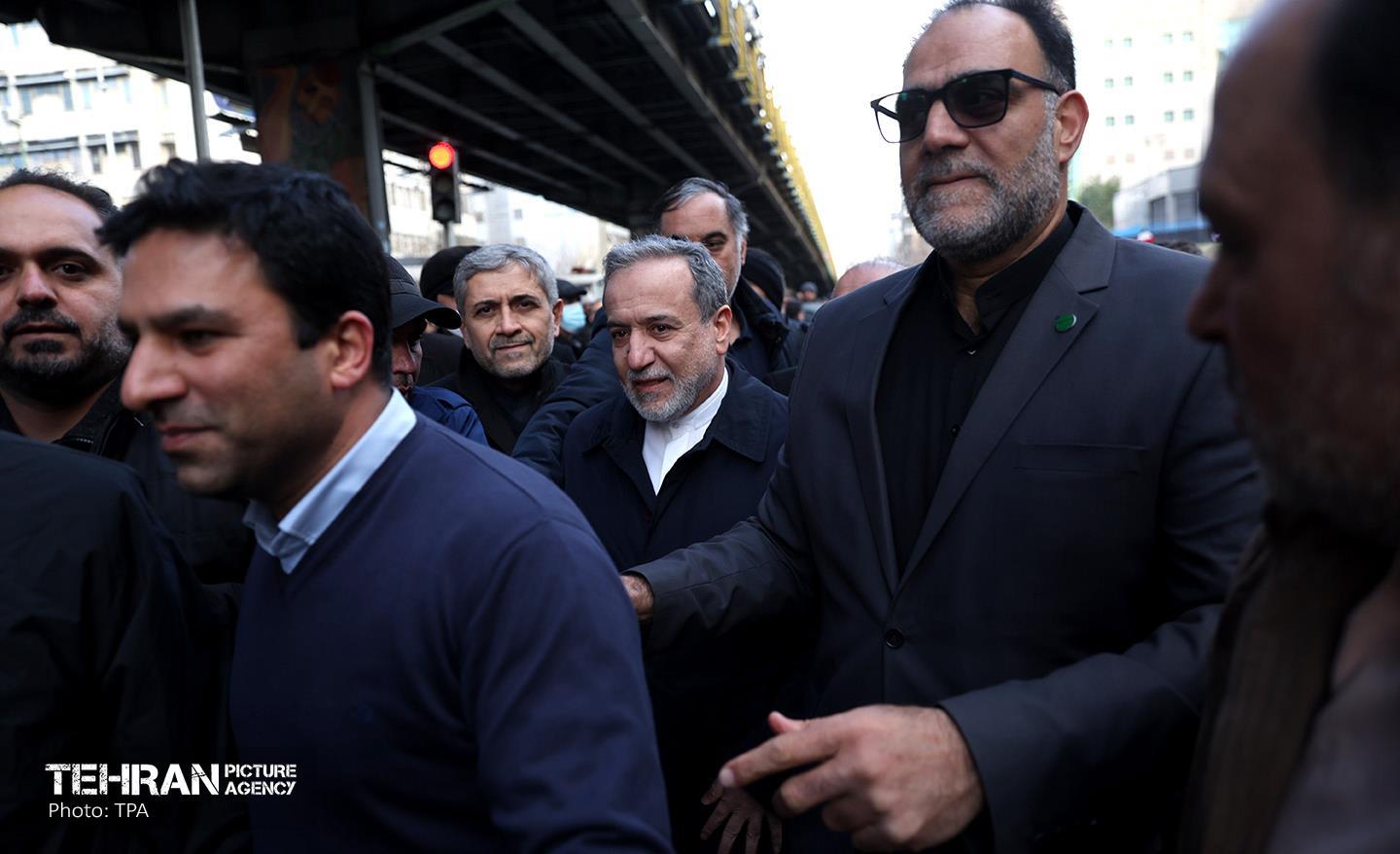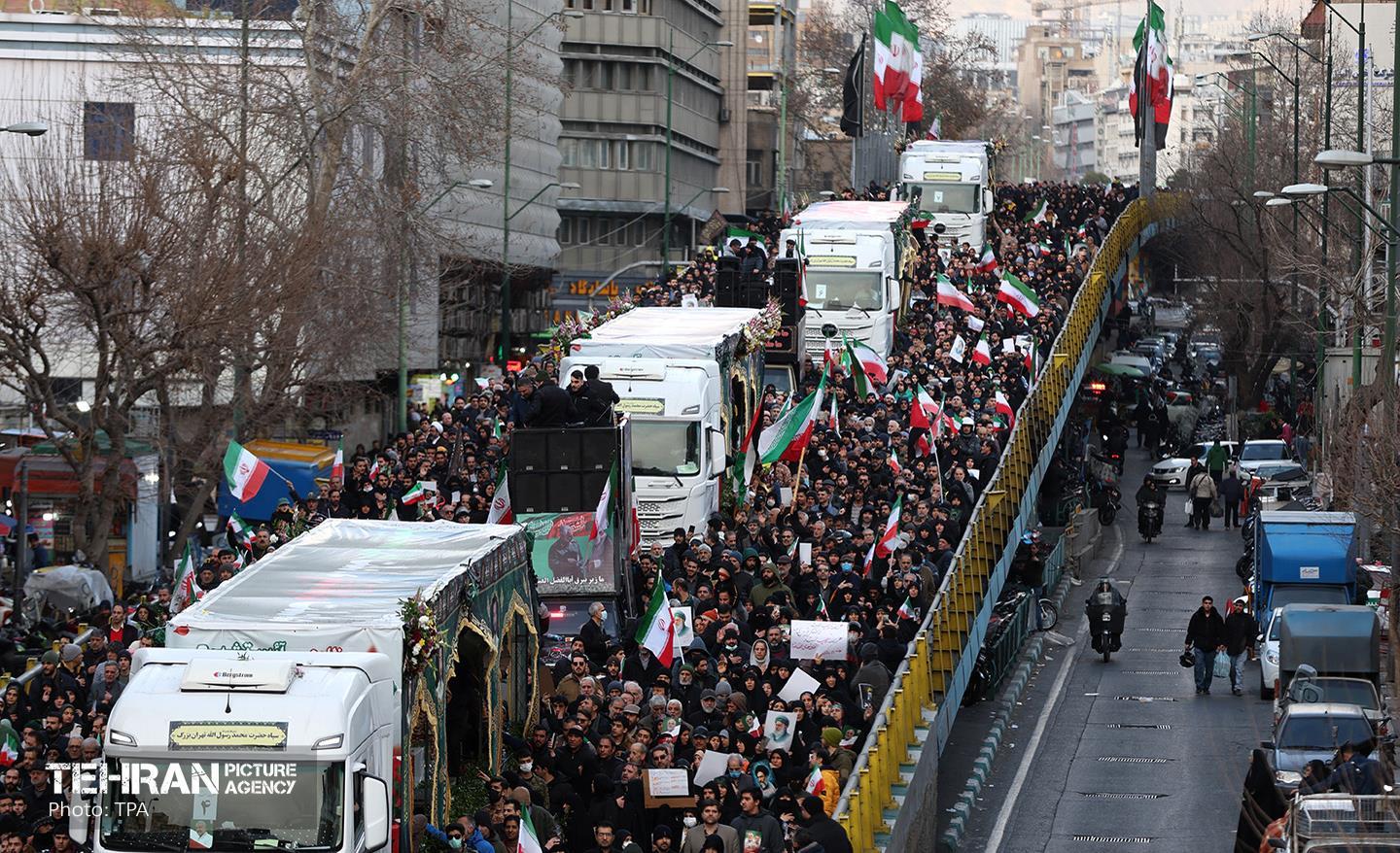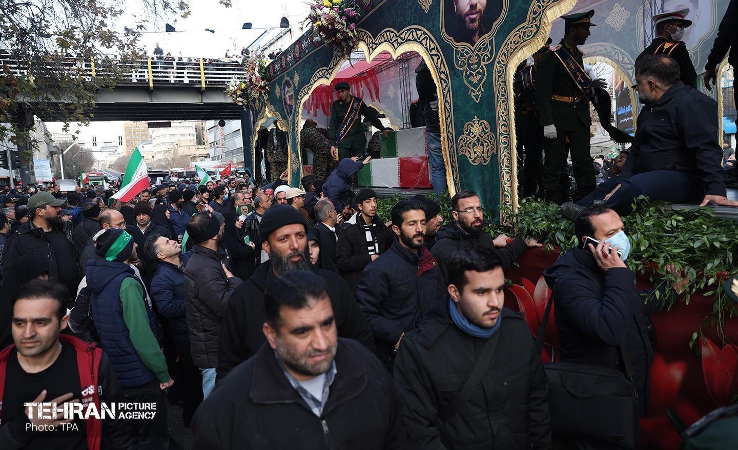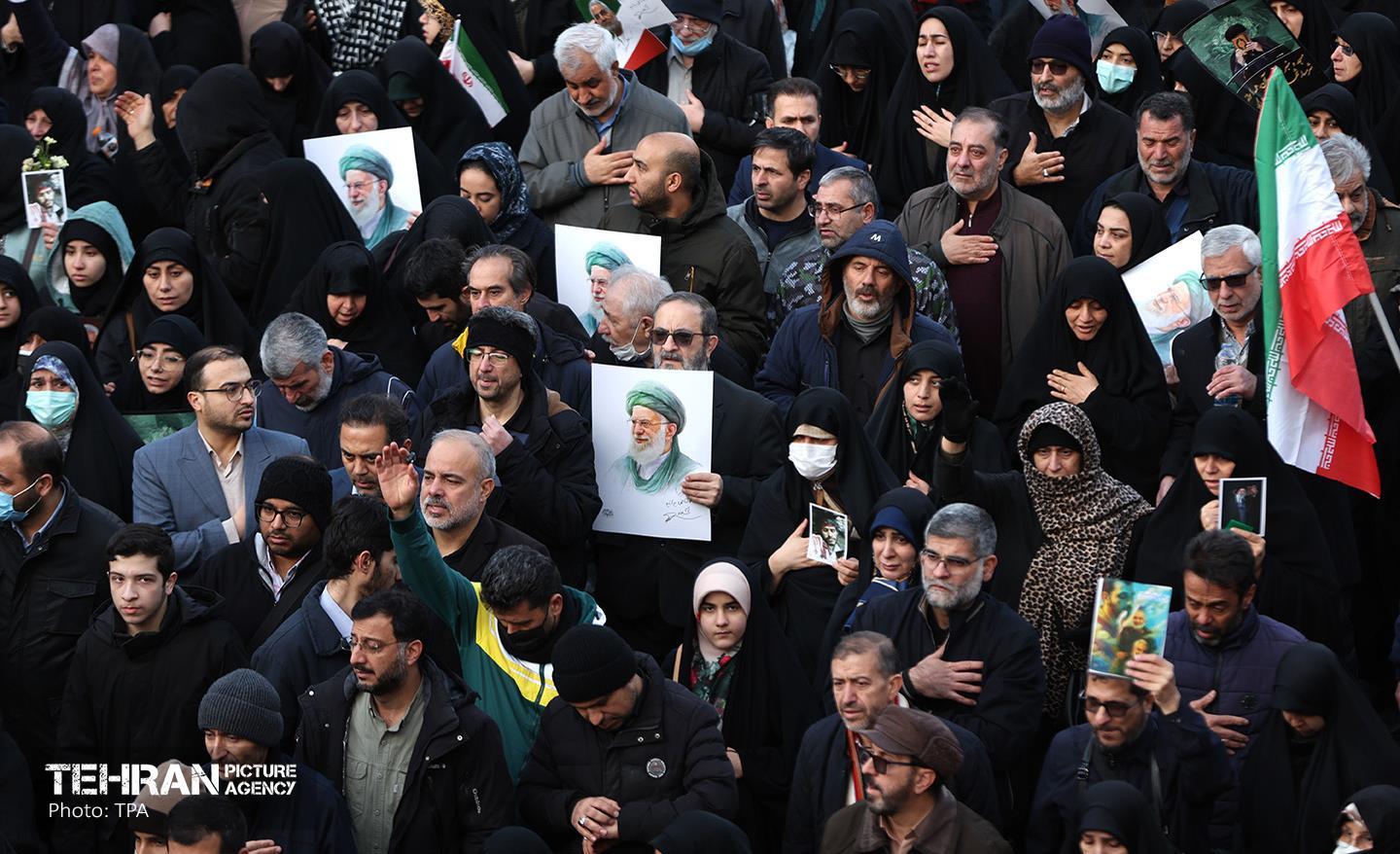 تشییع پیکر ۱۰۰ شهید مردمی و مدافع امنیت در تهران - 2 ۲۴ دی ۱۴۰۴ مراسم تشییع پیکر ۱۰۰ شهید مردمی و مدافع امنیت که در ناآرامی ها و اغتشاشات اخیر در تهران به شهادت رسیدند، عصر چهارشنبه، ۲۴ دی ۱۴۰۴ با حضور خانواده های معظم شهدا و ایثارگران، مسئولان کشوری و لشکری و اقشار مختلف مردم از مقابل دانشگاه تهران به سمت معراج شهداء برگزار شد. سبحان فرج ون https://www.tehranpicture.ir/u/nZ4 امنیت شهید تشییع عباس عراقچی
