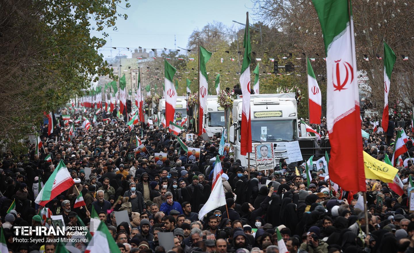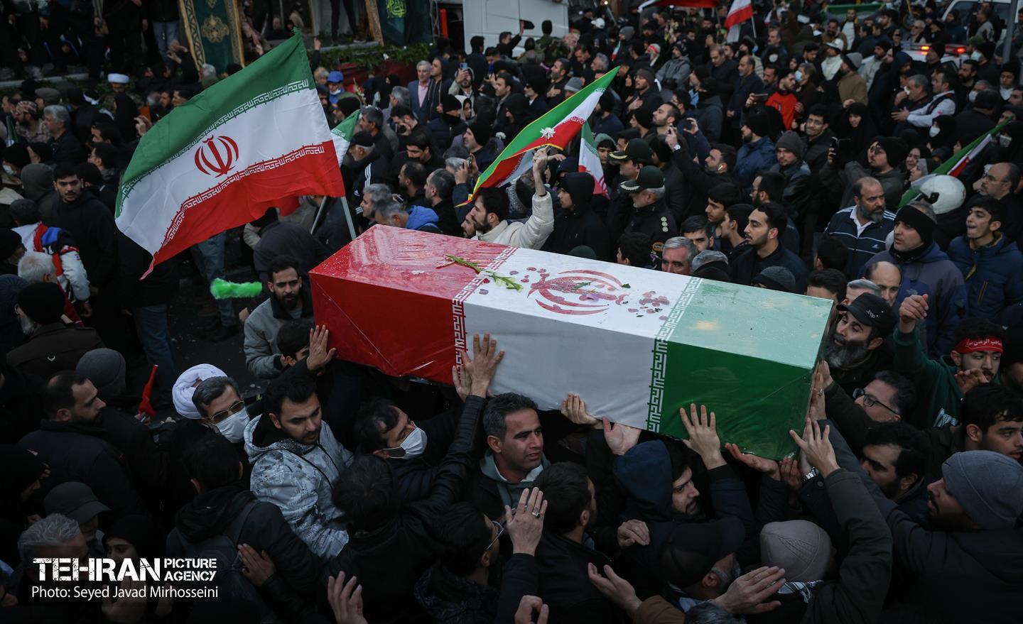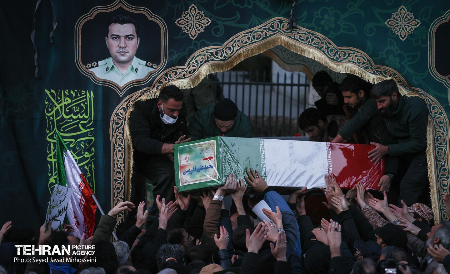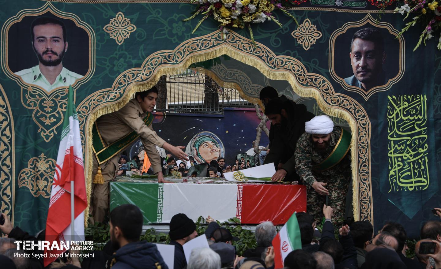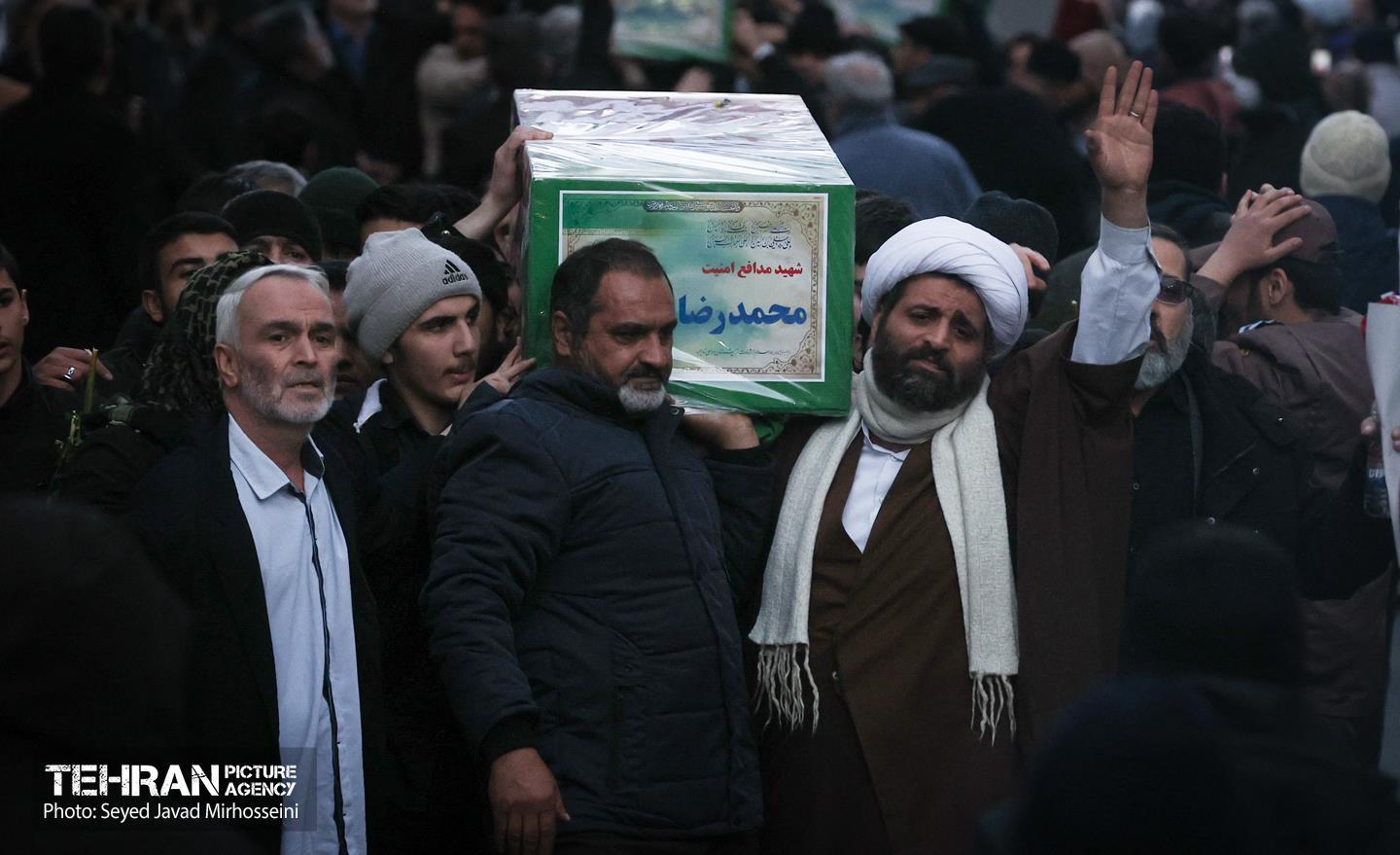 تشییع پیکر ۱۰۰ شهید مردمی و مدافع امنیت در تهران - 3 ۲۴ دی ۱۴۰۴ مراسم تشییع پیکر ۱۰۰ شهید مردمی و مدافع امنیت که در ناآرامی ها و اغتشاشات اخیر در تهران به شهادت رسیدند، عصر چهارشنبه، ۲۴ دی ۱۴۰۴ با حضور خانواده های معظم شهدا و ایثارگران، مسئولان کشوری و لشکری و اقشار مختلف مردم از مقابل دانشگاه تهران به سمت معراج شهداء برگزار شد. سید جواد میرحسینی https://www.tehranpicture.ir/u/nZ6 امنیت شهید تشییع شهدا نیروی انتظامی بسیج