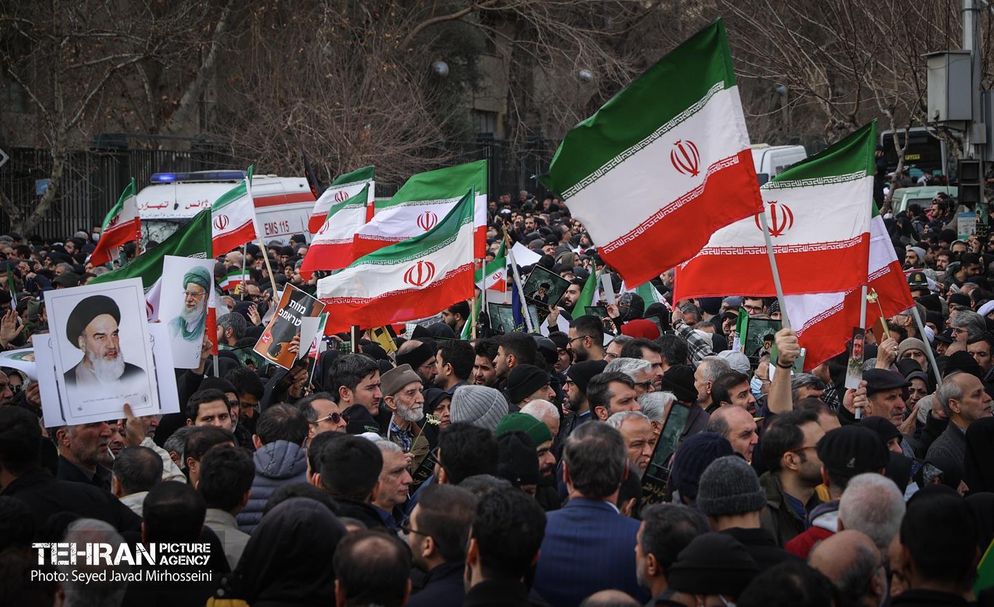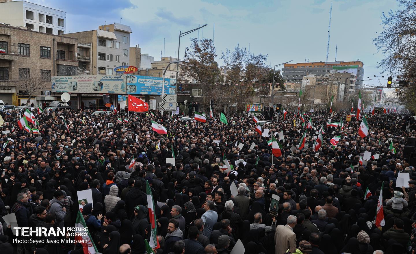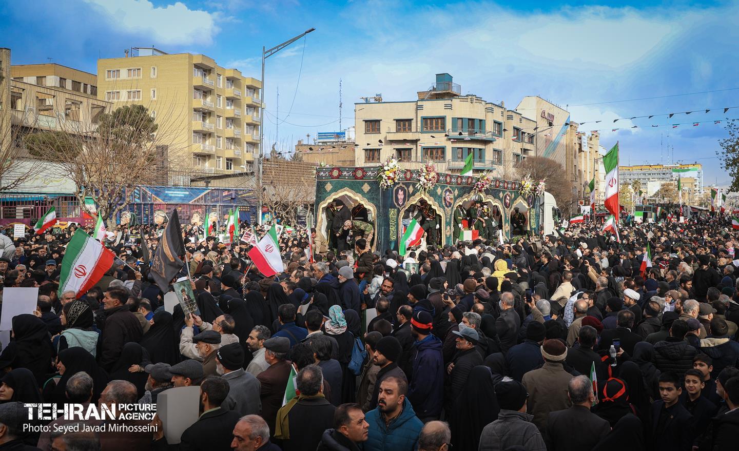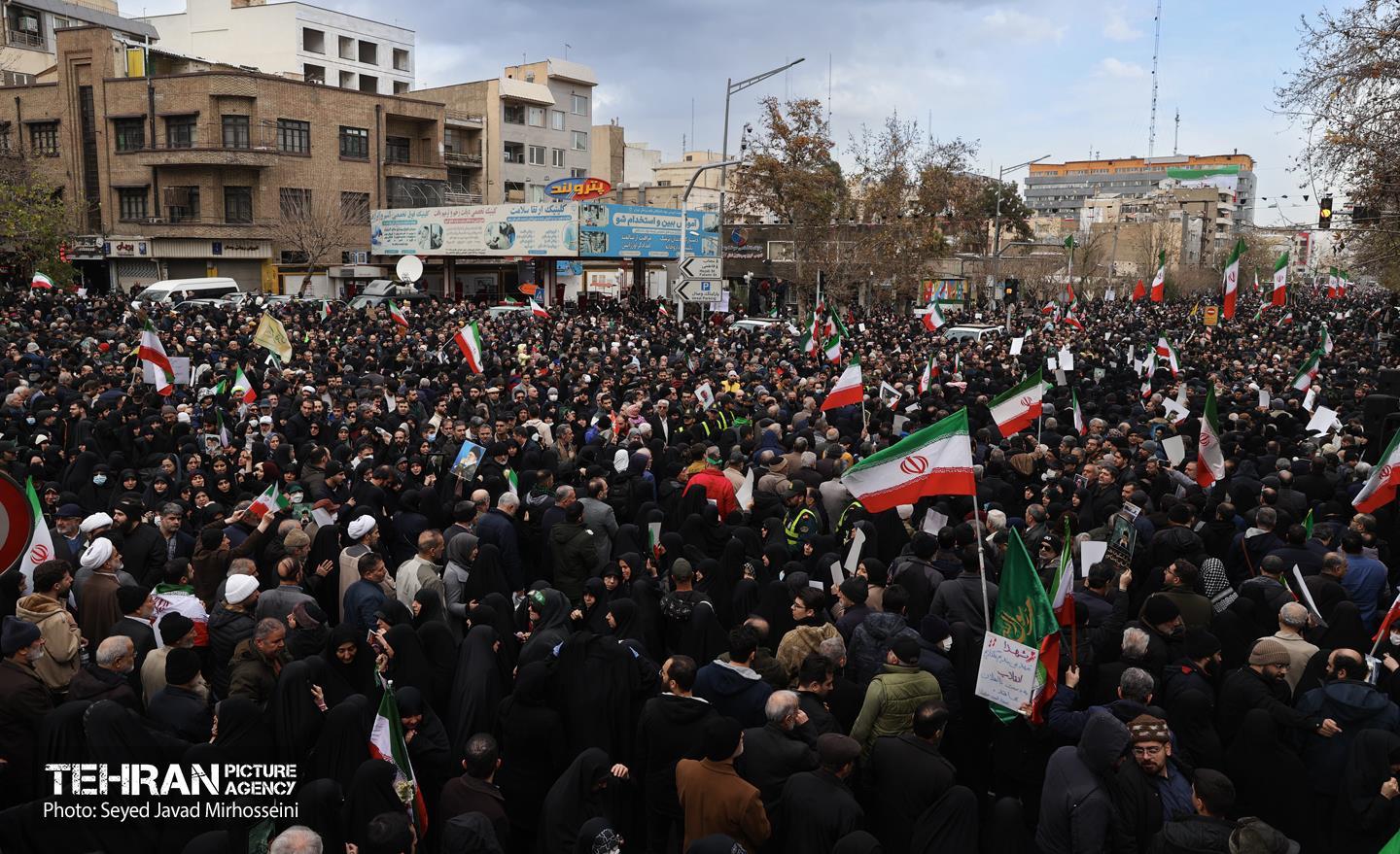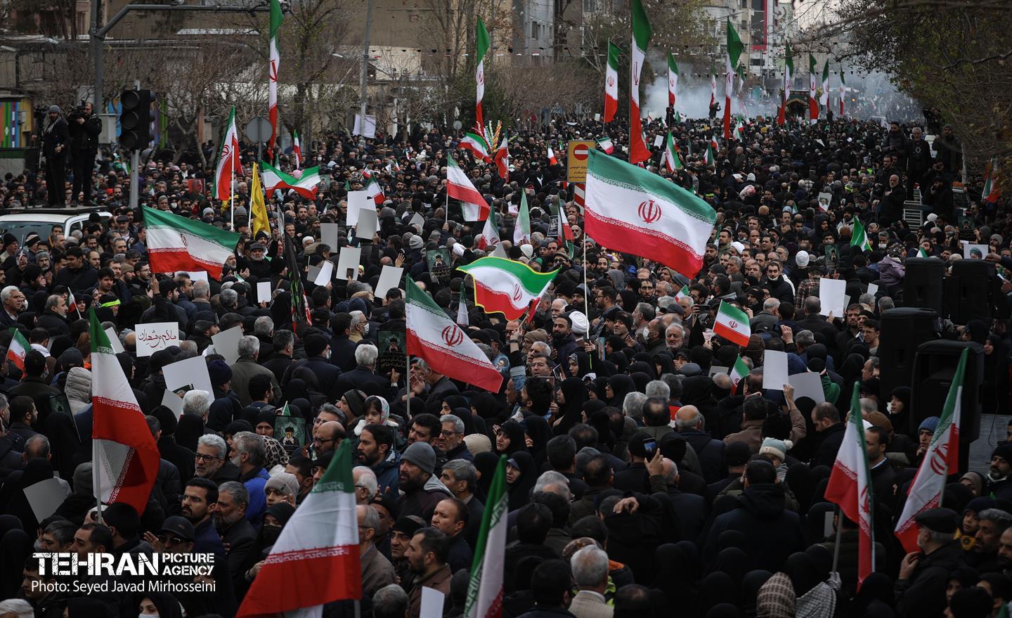 تشییع پیکر ۱۰۰ شهید مردمی و مدافع امنیت در تهران - 3 ۲۴ دی ۱۴۰۴ مراسم تشییع پیکر ۱۰۰ شهید مردمی و مدافع امنیت که در ناآرامی ها و اغتشاشات اخیر در تهران به شهادت رسیدند، عصر چهارشنبه، ۲۴ دی ۱۴۰۴ با حضور خانواده های معظم شهدا و ایثارگران، مسئولان کشوری و لشکری و اقشار مختلف مردم از مقابل دانشگاه تهران به سمت معراج شهداء برگزار شد. سید جواد میرحسینی https://www.tehranpicture.ir/u/nZ6 امنیت شهید تشییع شهدا نیروی انتظامی بسیج