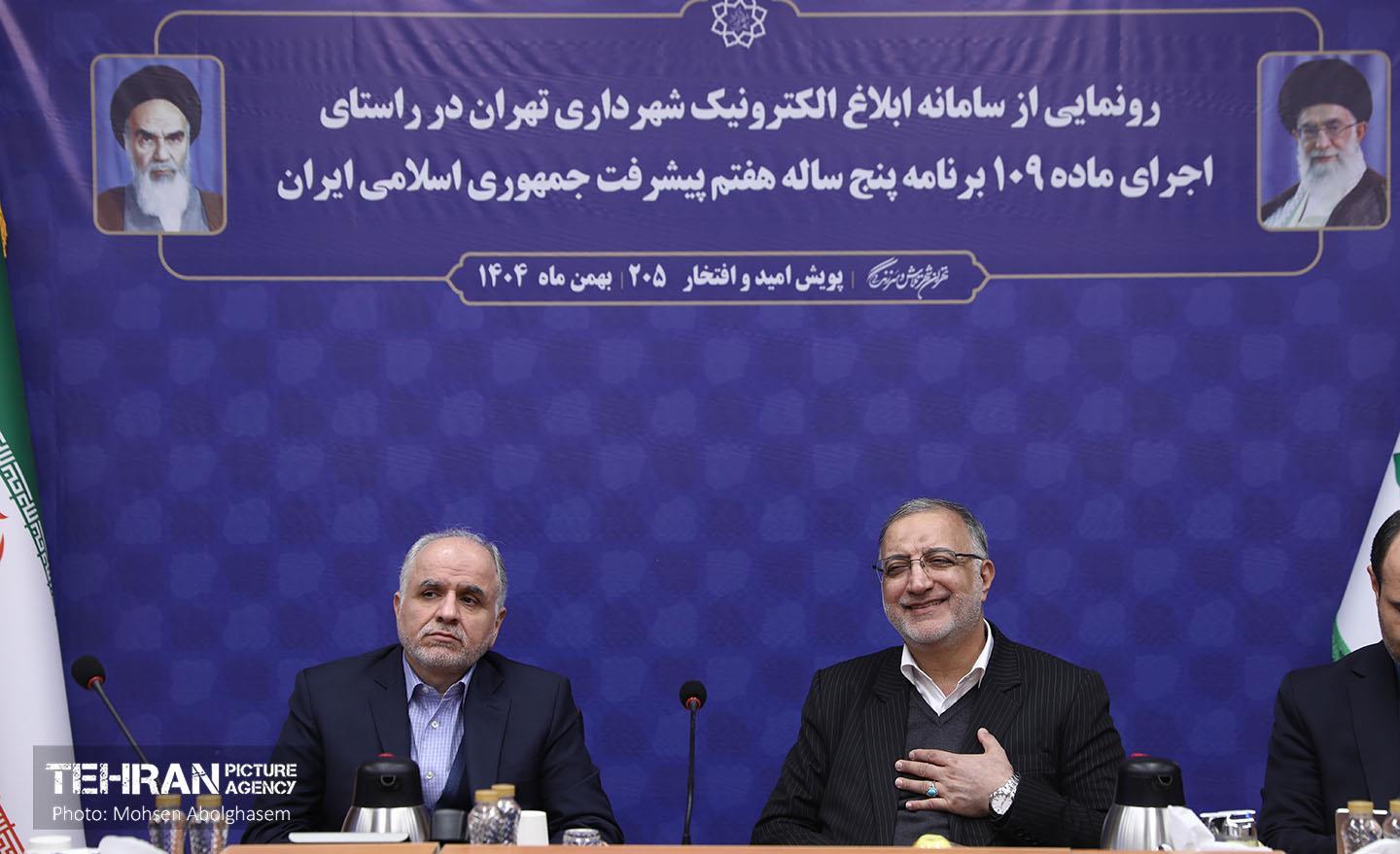 رونمایی از سامانه ابلاغ الکترونیک شهرداری تهران ۱۴ بهمن ۱۴۰۴ مراسم رونمایی از سامانه ابلاغ الکترونیک شهرداری تهران با حضور علیرضا زاکانی شهردار تهران و امینحسین رحیمی وزیر دادگستری برگزار شد. محسن ابوالقاسم https://www.tehranpicture.ir/u/nZJ سامانه ابلاغ الکترونیک شهرداری علیرضا زاکانی شهردار تهران امینحسین رحیمی وزیر دادگستری