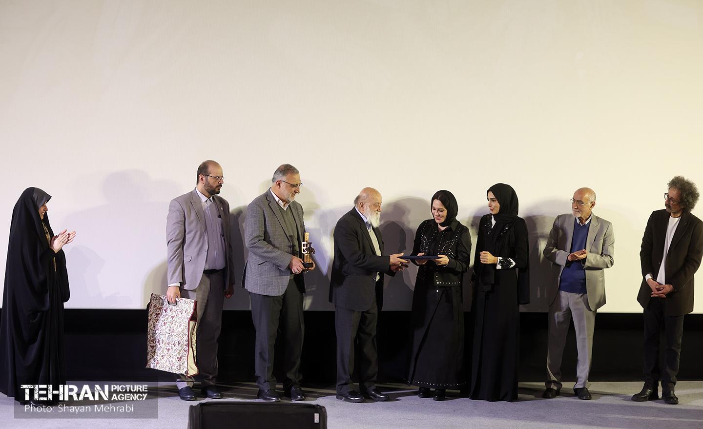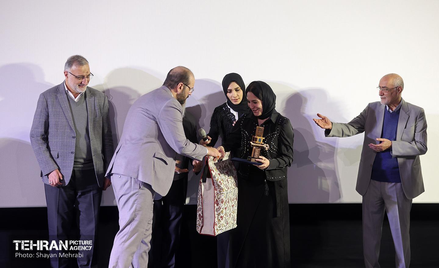 مراسم تقدیر از بازیگر فیلم «سرزمین فرشتهها» ۲۰ بهمن ۱۴۰۴ مراسم تقدیر از سلاف فواخرجی، بازیگر فیلم «سرزمین فرشتهها» با حضور علیرضا زاکانی شهردار تهران، مهدی چمران رئیس شورای اسلامی شهر تهران، بابک خواجه پاشا کارگردان فیلم، منوچهر محمدی تهیهکننده فیلم، رائد فریدزاده رئیس سازمان سینمایی، منوچهر شاهسواری دبیر جشنواره ملی فیلم فجر، محمدمهدی دادمان مدیر حوزه هنری، حمیدرضا جعفریان مدیر سازمان سینمایی سوره، مریم پیرکاری مدیرعامل موسسه تصویر شهر، دوشنبه ۲۰ بهمنماه در پردیس سینما ملت برگزار شد. شایان محرابی https://www.tehranpicture.ir/u/nZX جشنواره فجر علیرضا زاکانی شهردار تهران مهدی چمران سلاف فواخرجی فیلم سرزمین فرشتهها